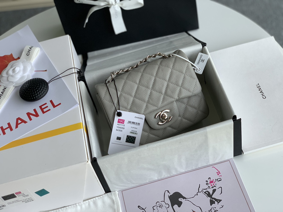Ch*el small classic handbag grained calfskin & silver-tone metal black 5.7 × 9 × 2.3 in